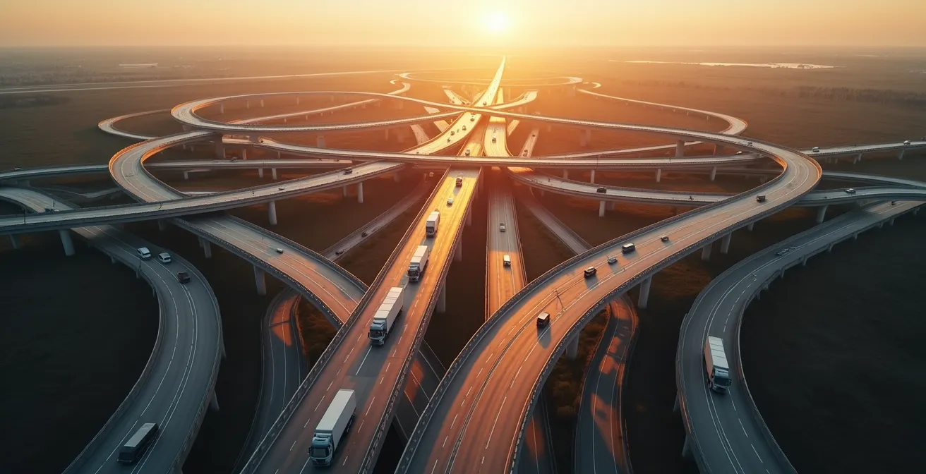 This article moves beyond conventional logistics analysis. We will deconstruct the ‘Route DNA’ of highways, revealing how specific geometric and structural characteristics create quantifiable friction points for heavy vehicles. Instead of simply reacting to delays, you will learn to proactively identify and analyze the hidden costs imposed by the very infrastructure your fleet relies on. This shift in perspective transforms the highway from a simple path into a measurable variable in your operational efficiency equation.